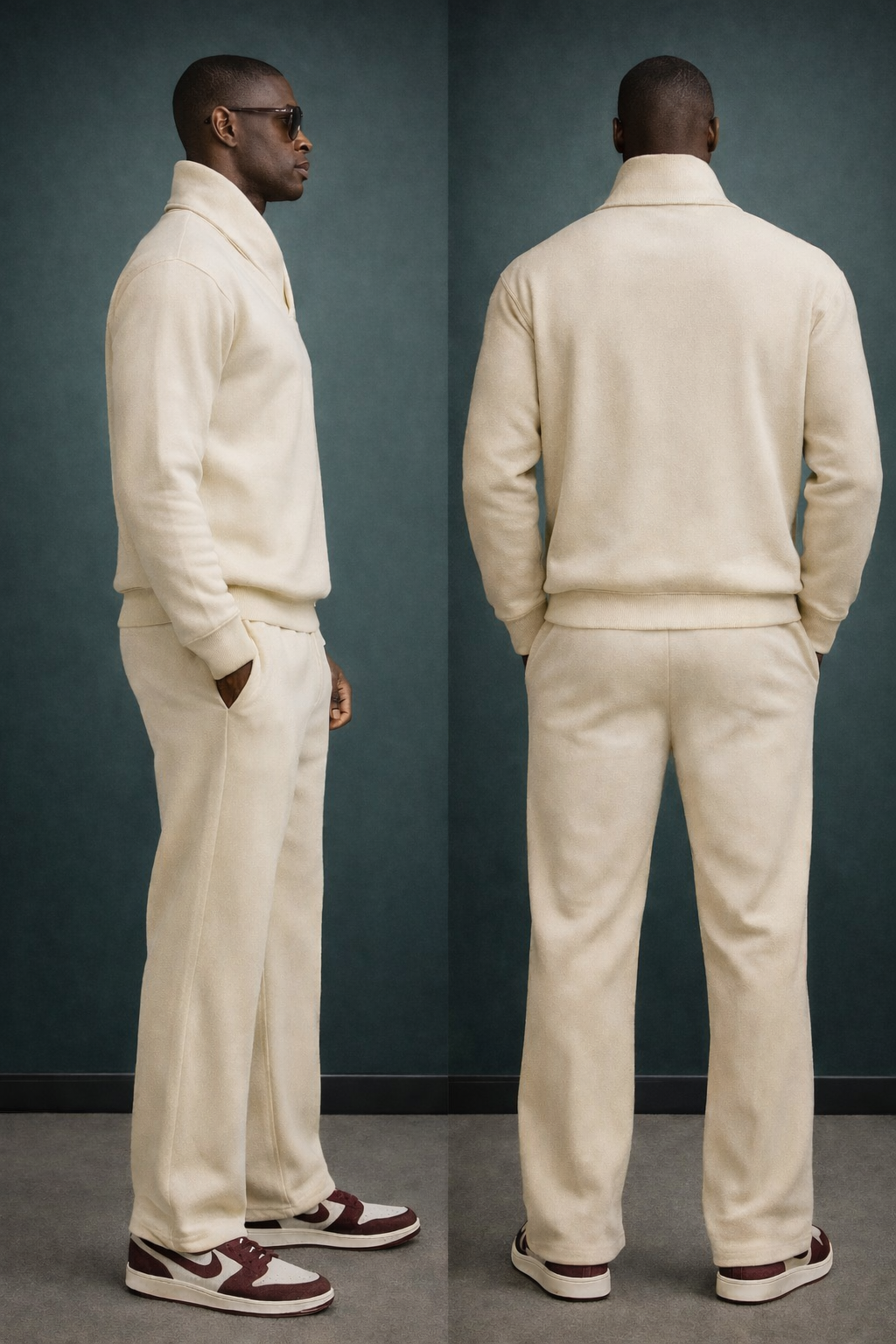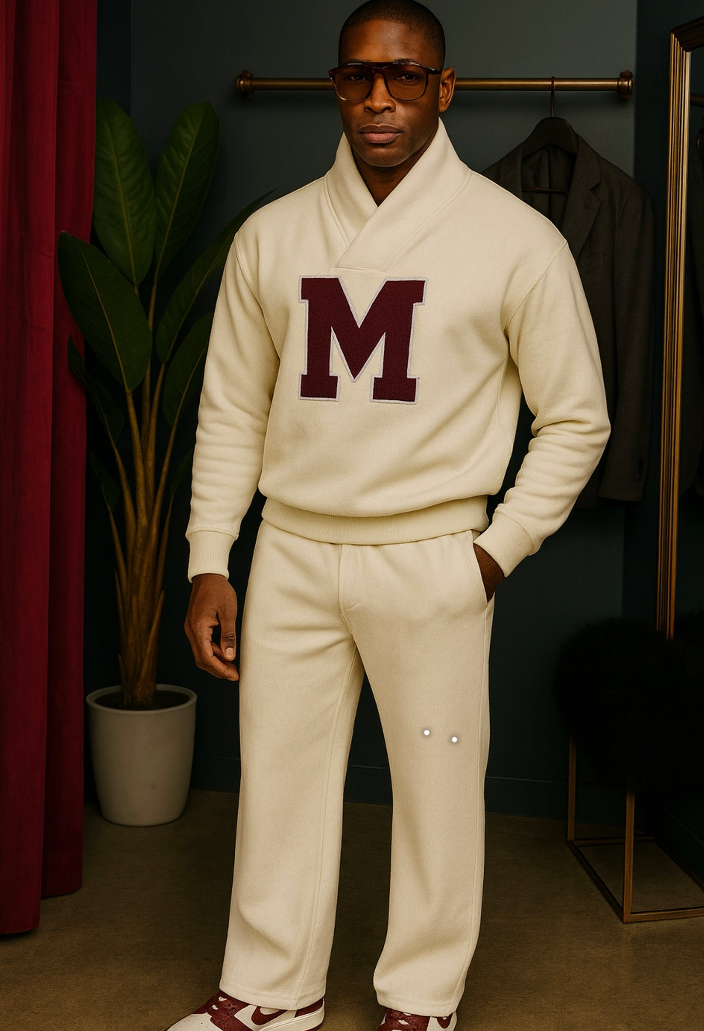 This rugby knit pant set is the perfect combination of style and comfort. Made with a soft and luxurious Belgian Textil knit, you'll stay cozy while looking effortlessly chic. The burgundy pants and shirt, with a cream accent collar, give off a casual yet sophisticated vibe. Perfect for any occasion.