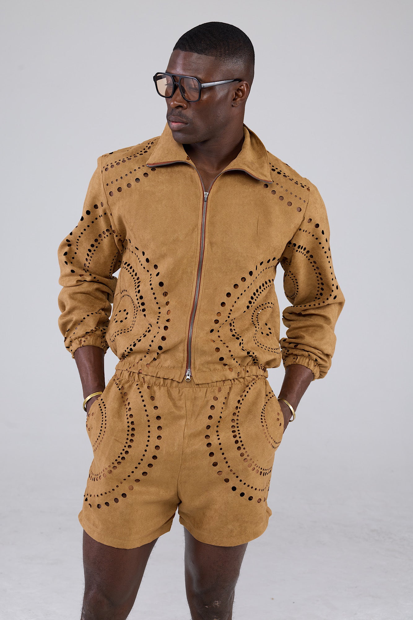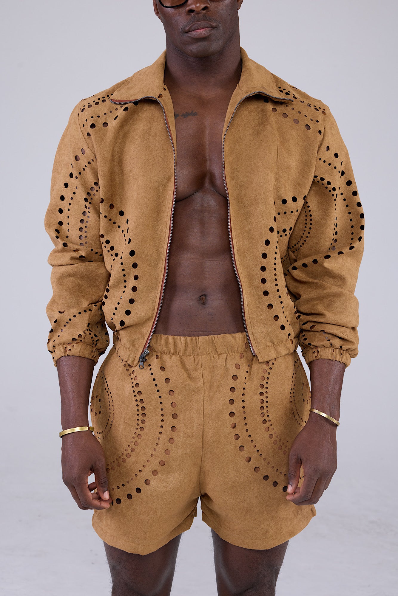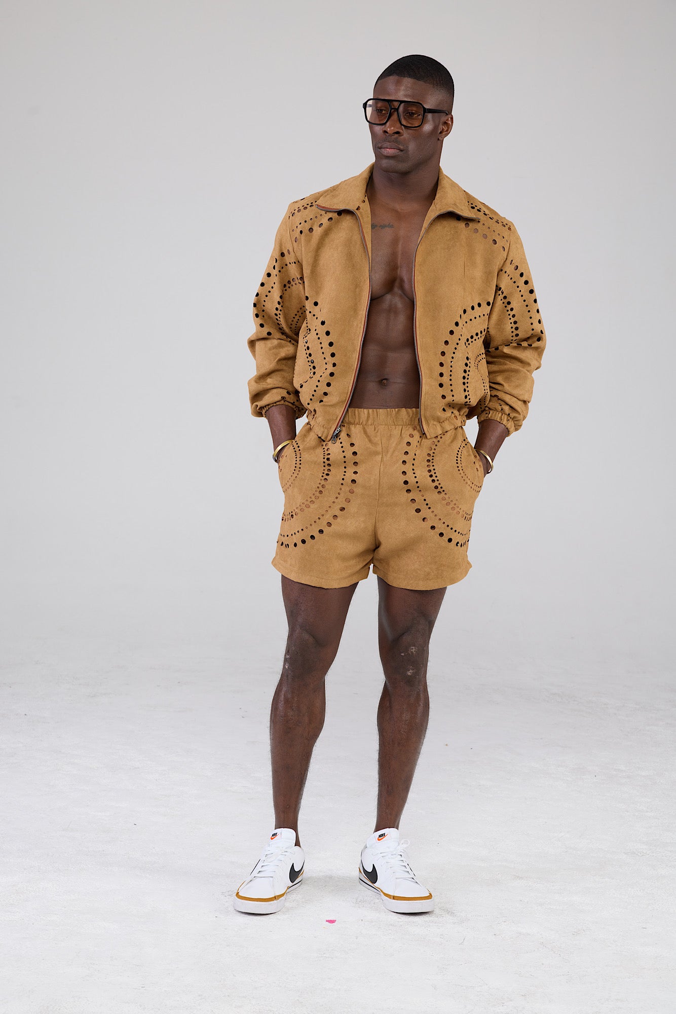 MODEL IS WEARING A MEDIUM JACKET 32 shorts