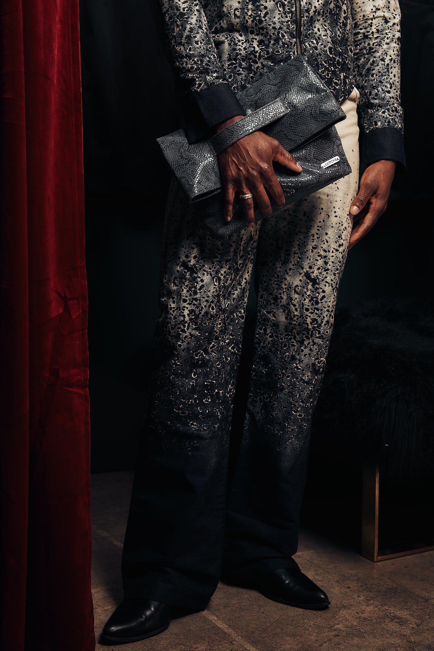 Discover the ultimate luxury and sophistication with our Envy Jr Malebag grey clutch. Featuring a genuine leather outer, this sleek and professional design is fully lined for maximum protection. Keep your essentials organized with the convenient wrist strap and extra storage pockets. Elevate your style and class with this must-have accessory. Experience the elegance and functionality of this Grey snake skin soft leather clutch, perfect for any occasion.
