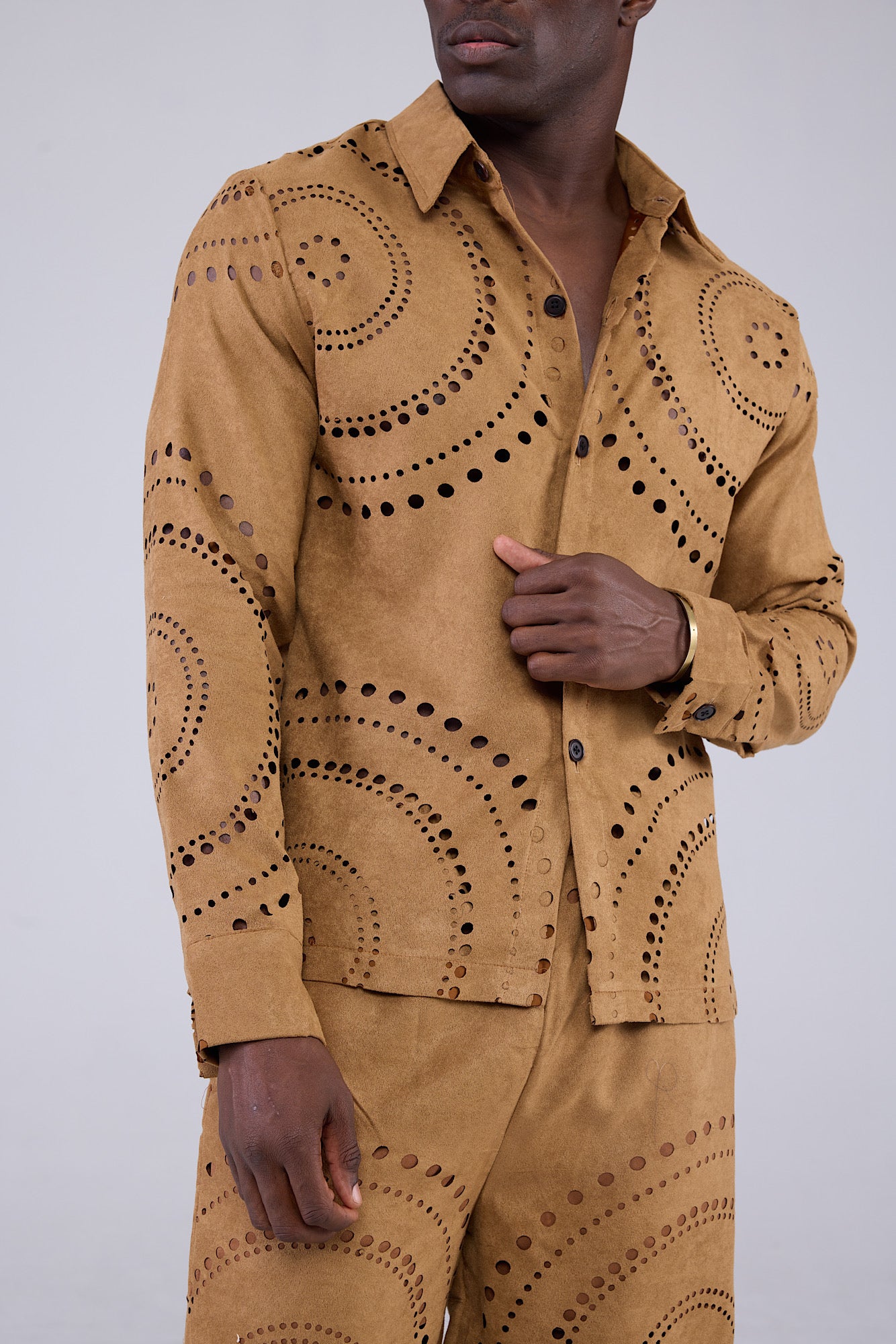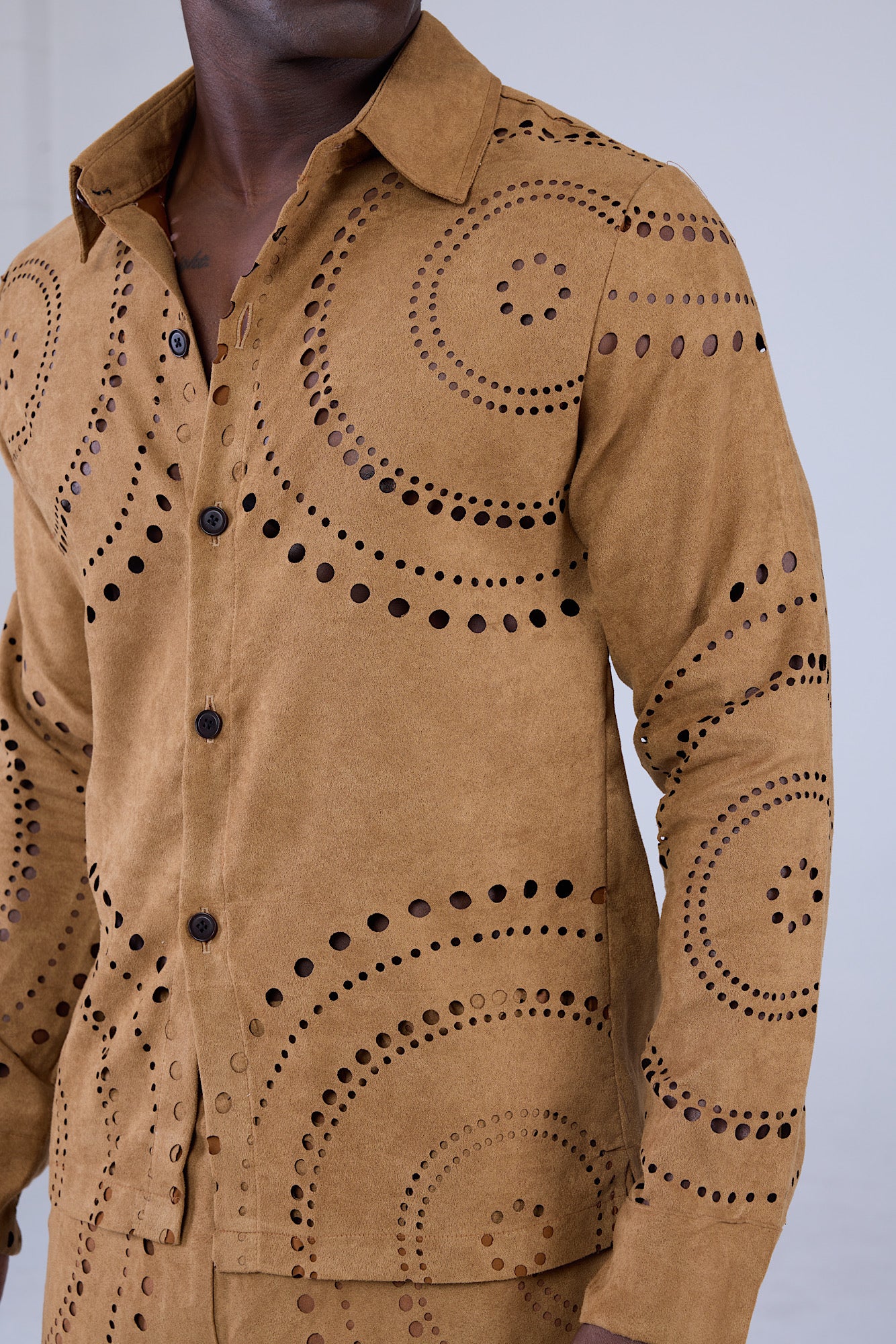 Nauru Suede laser cut-out button down